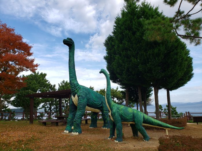 There are a pair of dinosaurs in the park, as if to remind people of some of the incredible places to find dinosaur footprints in Goseong.