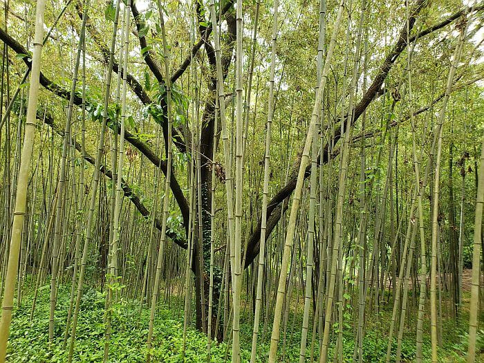 It is well-shaded and it is nice having the woven material on the path to walk comfortably among the bamboo swaying in the wind.